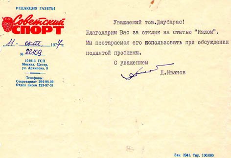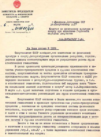 For quite a long period of time bodybuilding was prohibited in the USSR and it was not supported in all socialist World. Everywhere gyms were closed, contests prohibited, sportsmen were prosecuted, media flew as maximum dirt as possible to bodybuilding. Under pressure of the Communist Party the Ministry Sport USSR (Union Soviet Socialist Republics) issued a strict order against bodybuilding and this way they had a law basis to follow bodybuilders. For many years of prosecution in the Sport Ministry (Goskomsport) employed former weightlifter E.MOROZ (later V.TAMARLAKOV) had been responsible for bodybuilding. A step below of them was another one representative Lithuanian ROMANAS KALINAUSKAS. Everybody was afrayed to fight or even to say a single word to stand for bodybuilding. As in such a wide territory nobody organized bodybuilding contetsts, but EDMUNDAS DAUBARAS dared to do it first with „Amber Prix International“ in Klaipeda (Lithuania). ROMANAS KALINAUSKAS and other high officials wanted to stop him saying that in case the new procecutions started they are not going to loose their Communist Party certificates and they will stay away from EDMUNDAS DAUBARAS. Nevertheless E.DAUBARAS did it on his own risk. The contest in Klaipeda took place, only the EDMUNDAS DAUBARAS played his game with the Sport Ministry and he had to make some artificial changes adding power exercises to the usual programme. Just after this EDMUNDAS DAUBARAS started active correspondence with the Sport Ministry USSR as well as with main USSR political media: newspapers „Pravda“, „Izvestija“, „Soviet Sport“, which used to publishe awfull articles against bodybuilding (like „Trijanskij kon kulturizma“..). Then EDMUNDAS DAUBARAS wrote a number of articles protecting bodybuilding and started to collect signatures of known people under these articles. It became the pettition to unite people to protect bodybuilding sport (these historic materials are in the archieves of the WFF-WBBF International (World Fitness Federation, World Body Building Federation). Then EDMUNDAS DAUBARAS on his risk went to Moscow to register and present these materials at the Central Committe Communst Party USSR and Ministry Council USSR. When back to Lithuania EDMUNDAS DAUBARAS sterted to receive lots of calls from the Central Committe Communst Party USSR. The discussion started. It was evident that some positive agreement may happen. That bothered Lithuanian Communist Leaders. Finally the telepfone of EDMUNDAS DAUBARAS was totally swiched off line and they invited EDMUNDAS DAUBARAS to Klaipeda Headquarters asking to stop pushing highest USSR officials. At the same time though bodybuilding was a prohibited sport they gave EDMUNDAS DAUBARAS permittion to organize anual „Amber Prix International“ in Klaipeda. It is not a secret that for many years „Amber Prix International“ was the only one International bodybuilding contest in the Socialist World and until 1988 it served as a not official Championship of the USSR. If not the „Amber Prix International“ nuobody knows what would have been the history of bodybuilding in the USSR and all Socialist World. Nobody knows how the Socialist bodybuilding sport would have met the first USA bodybuilders that came to the USSR under the leadership of the Owner and life President IFBB (International Federation of Body Builders) BEN WEIDER. BEN WEIDER was an old personal friend of EDMUNDAS DAUBARAS. For many years they bogth had active correspondence, a number of mutual meetings in various countries. Finally they were working on the setting a Join-Venture Company (again these documents are in the archieves of the WFF-WBBF International (World Fitness Federation, World Body Building Federation).