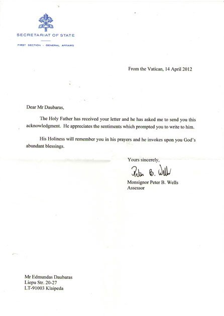 in 2012 the WFF-WBBF International Headquarters received a letter from the State Vatican.