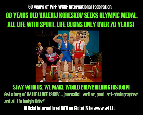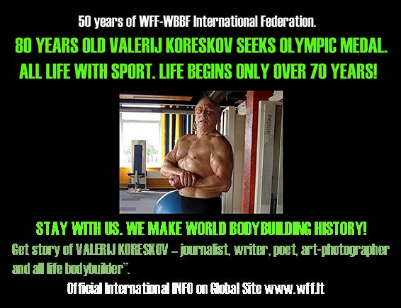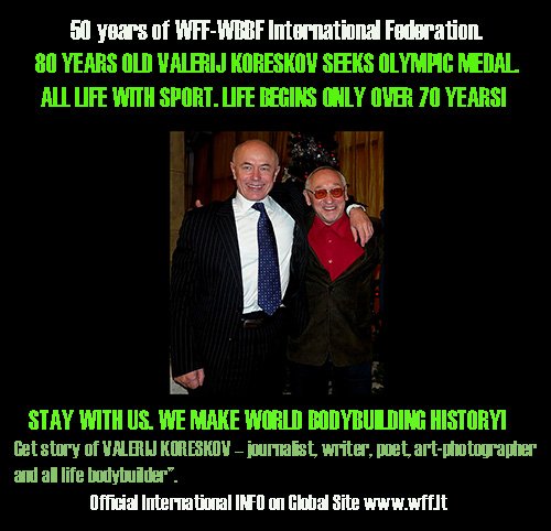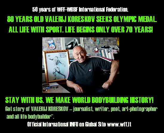 Neseniai VALERIJUS KOREŠKOVAS bendravo su Pasaulinės WFF-WBBF federacijos vadovais. Greitai švęsiantis savo aštuoniasdešimtmetį, VALERIJUS KOREŠKOVAS pareiškė sieksiantis artimiausio pasaulio čempionato titulų.